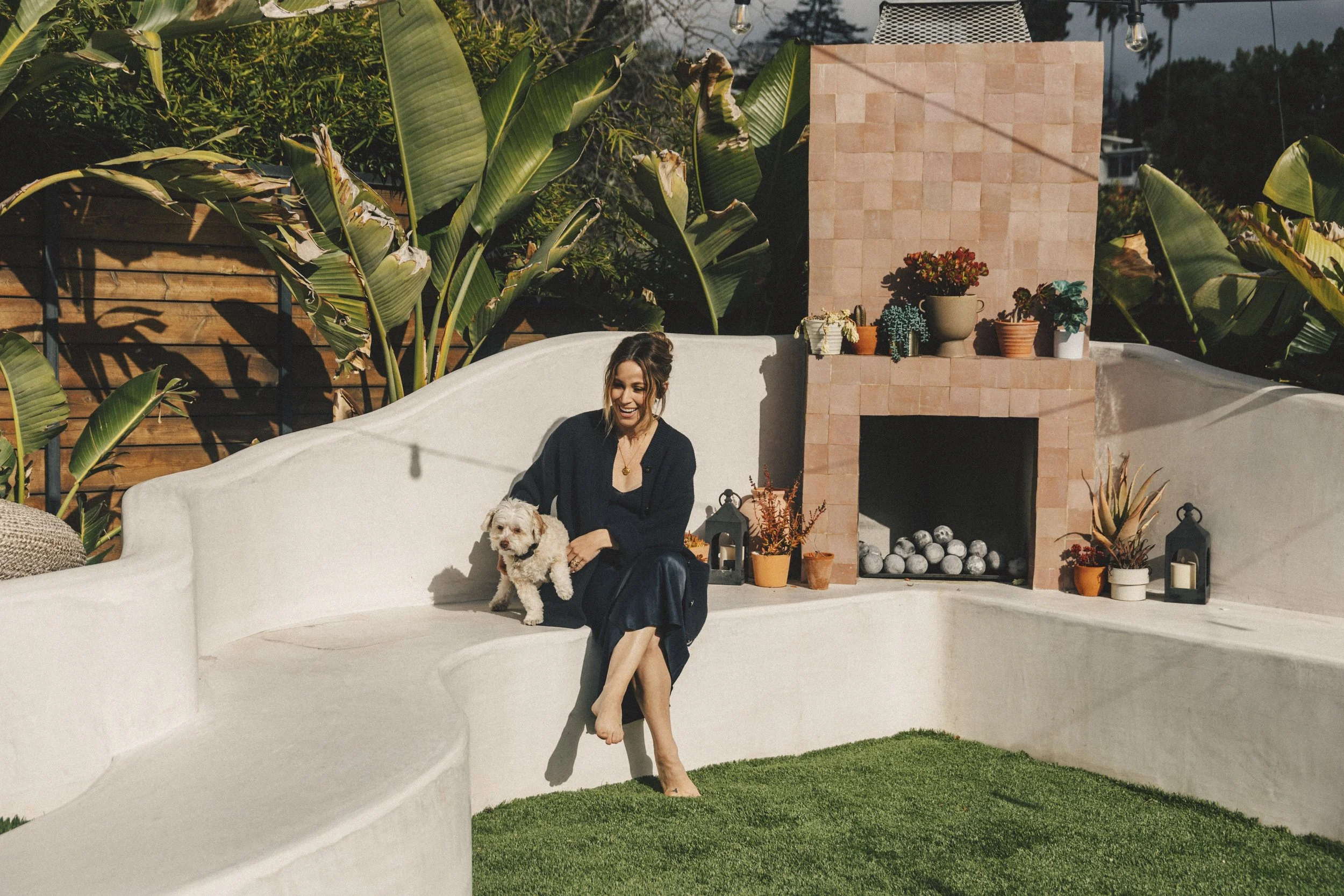 “You are cracking me up,” Johnson says to her three-year-old dog Winnie, as she plays catch with him. “She will never get tired of doing this.” She explains that she and her husband got Winnie through his work. “My husband teaches at Cal Poly. He's a professor of design. One of his students had posted that one of their siblings got her and couldn't keep her. He was like, ‘I think we should take her in and foster her,’ and we already had another dog, so I wasn’t sure. They thought she was a Maltipoo, which is hilarious. We took her in and fell in love and then we did a DNA test and found out she's a Chihuahua poodle. She's the sweetest love bug.”
